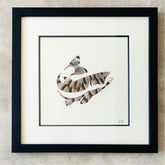 All pictures come framed in a black frame with a fabric white over black double mount as standard.
