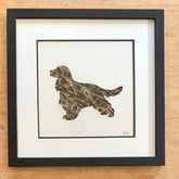 The Show Cocker Spaniel. I’ve chosen to use hen pheasant feathers to capture the brown and black tonality often found in this breed of dog. You can choose whichever feather you prefer.
